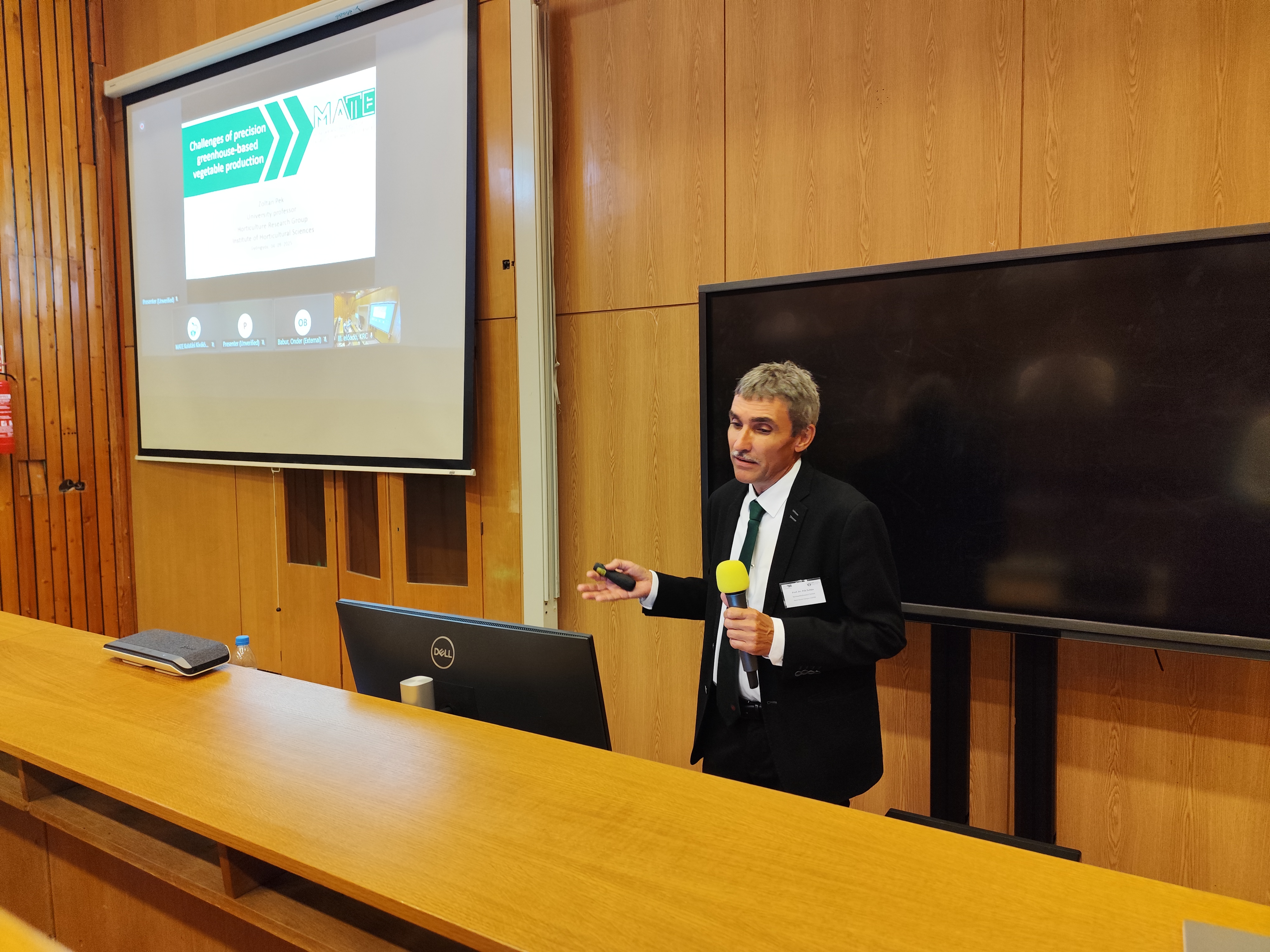 Following a networking break, in the afternoon topical presentations, colleagues from the Research Excellence and Flagship Research Group Programmes gave field-specific insights into the possibilities and challenges of data collection and analysis. First, Dr. Zoltán Pék, professor at the Institute of Horticultural Sciences, delivered a presentation on the challenges of precision greenhouse-based vegetable production, illustrating also the actual best Hungarian greenhouse practices.